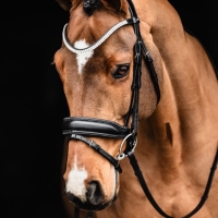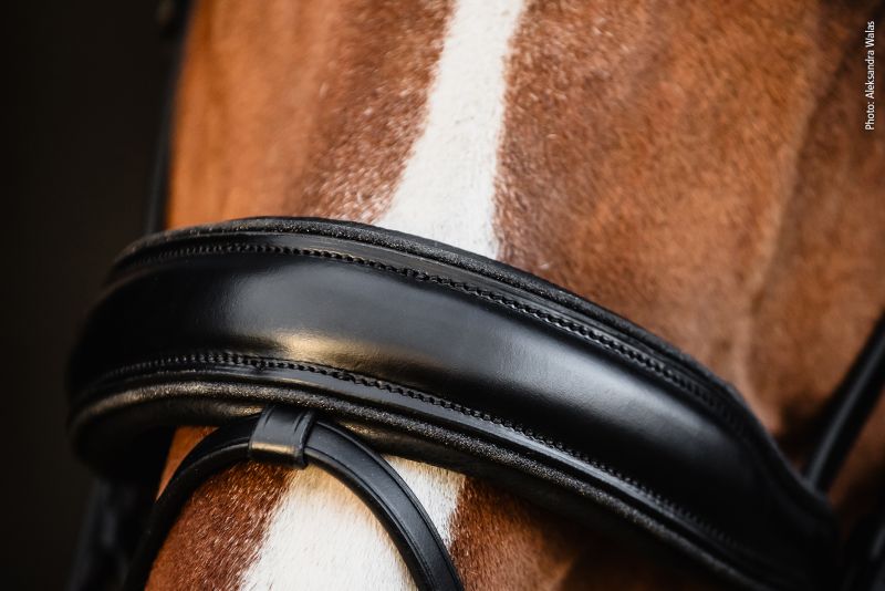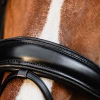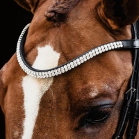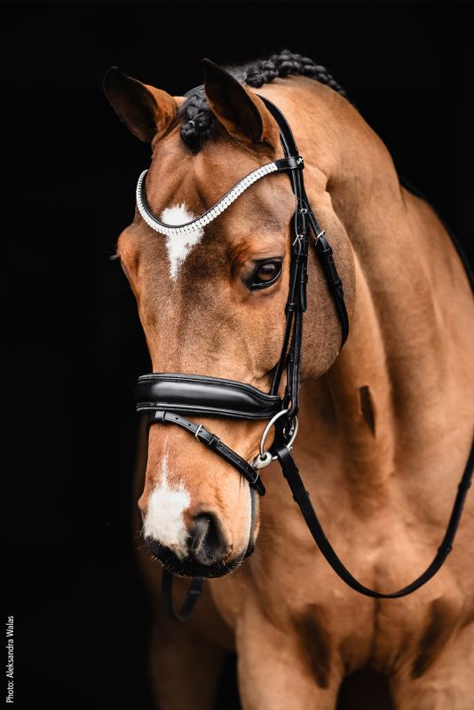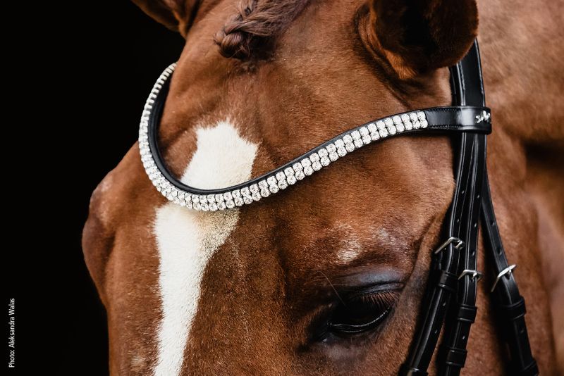 Glitter piping around the browband and headpiece for a refined aesthetic touch