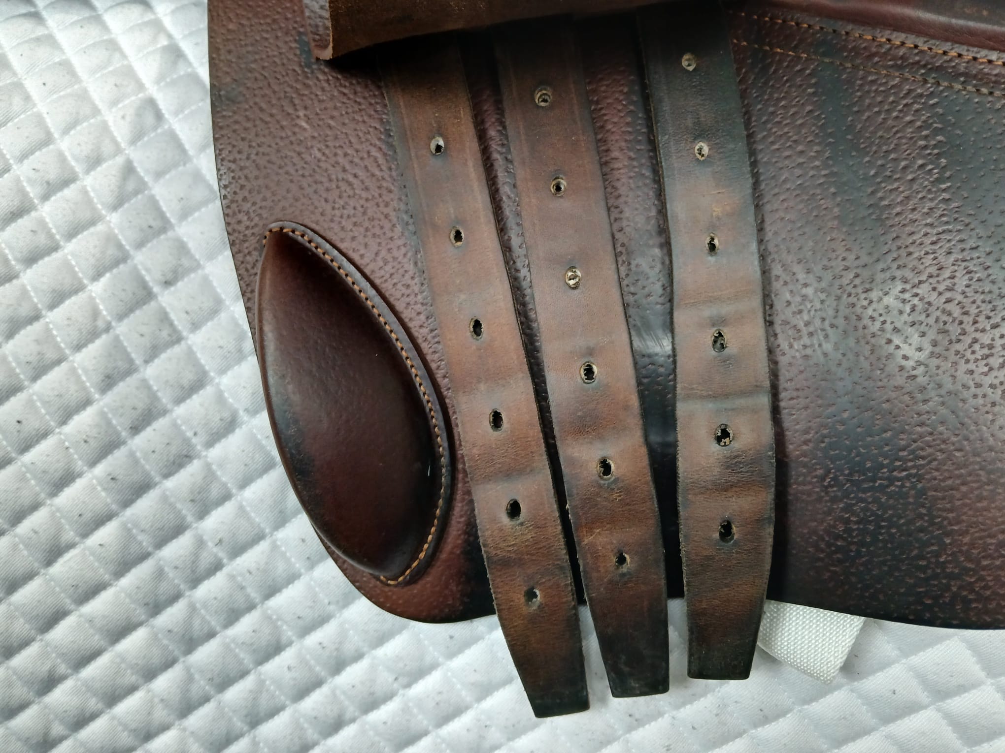 - Long buckle-guards are sewn to preserve the underneath of the saddle flap from wear