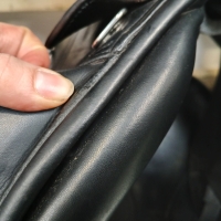- Orange coloured piping around the seat