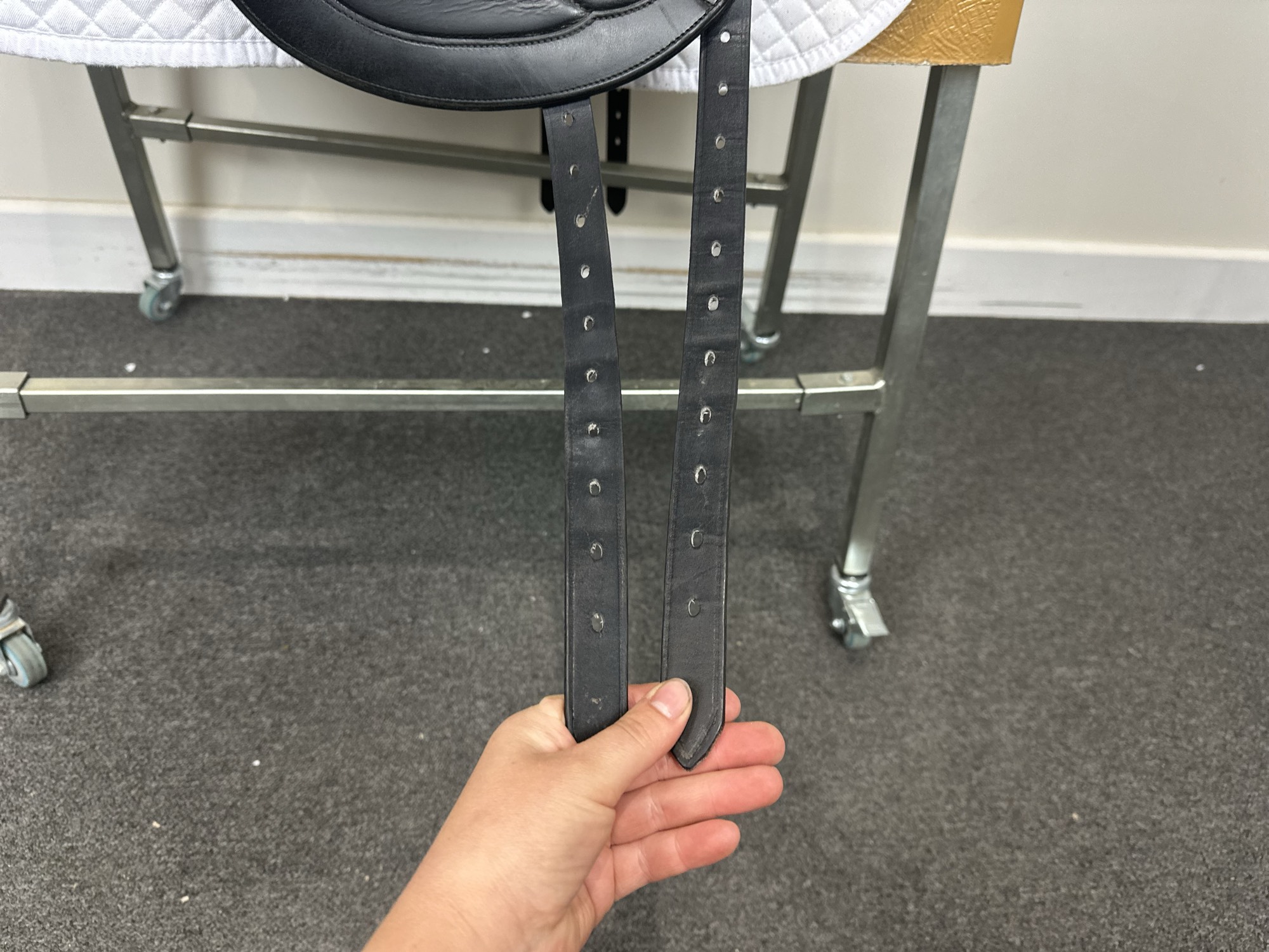 Keep your saddle at room temperature, away from direct heat or damp conditions. Always store it on a saddle rack or stand to preserve its shape.