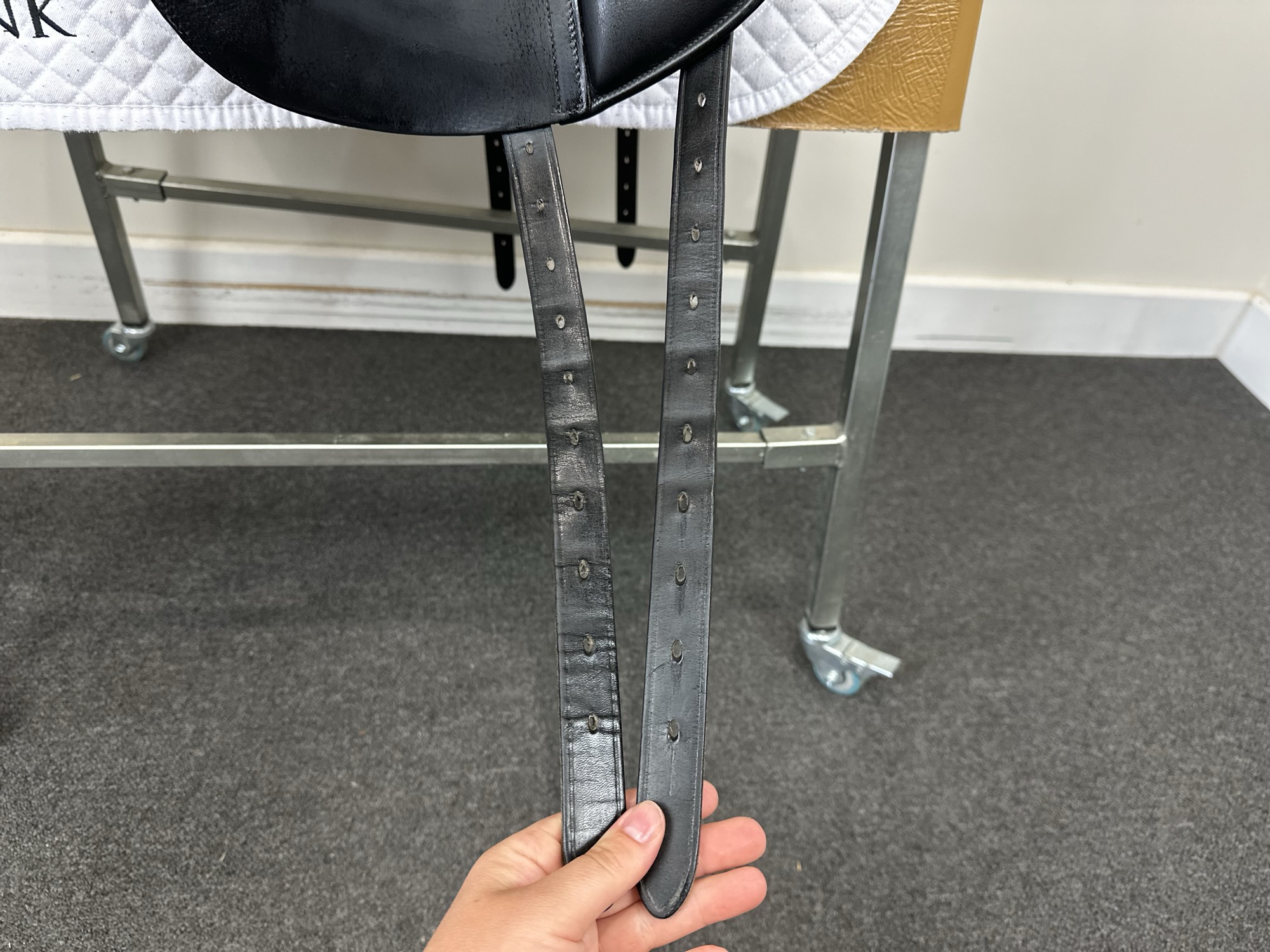 Keep your saddle at room temperature, away from direct heat or damp conditions. Always store it on a saddle rack or stand to preserve its shape.