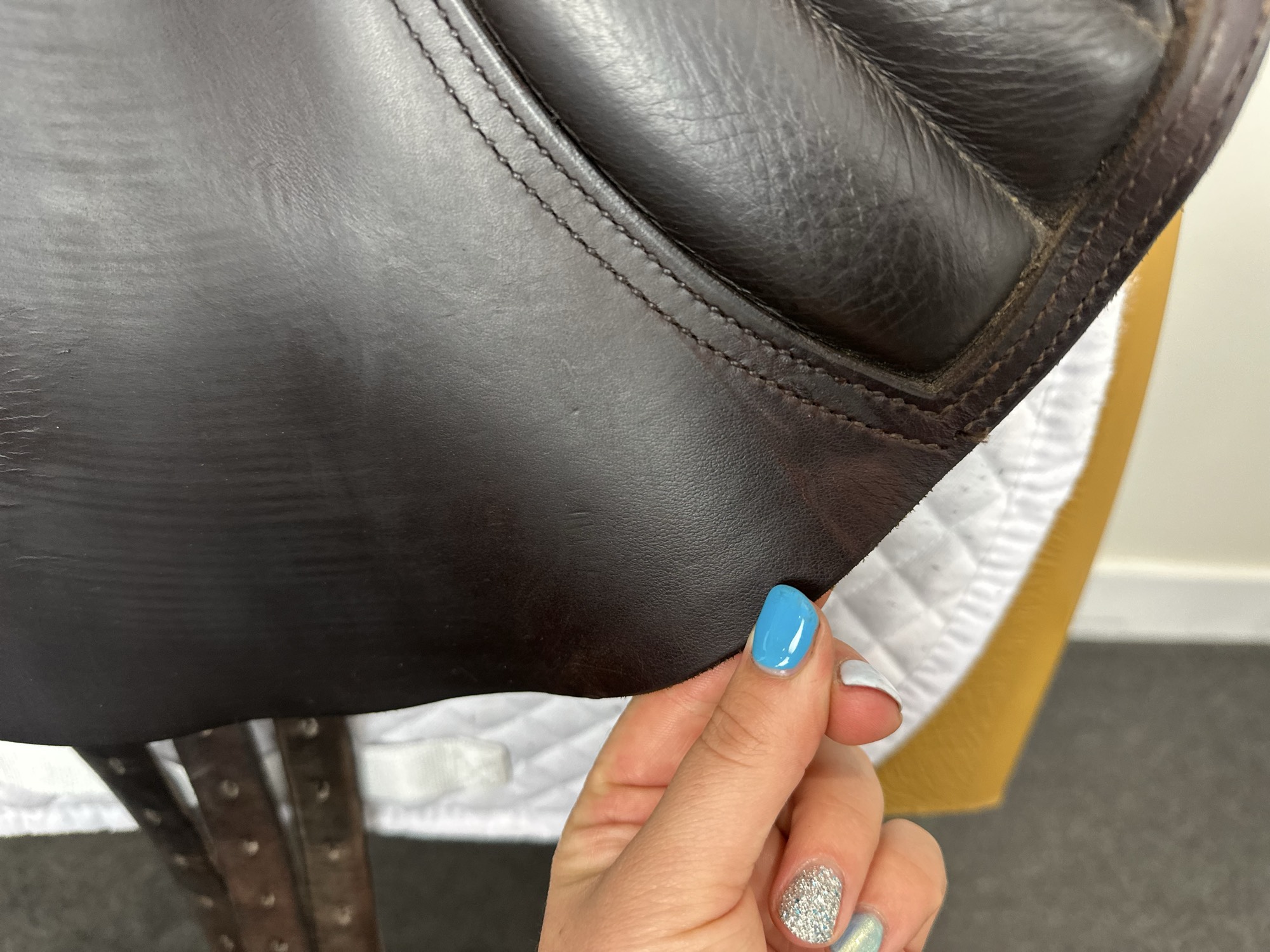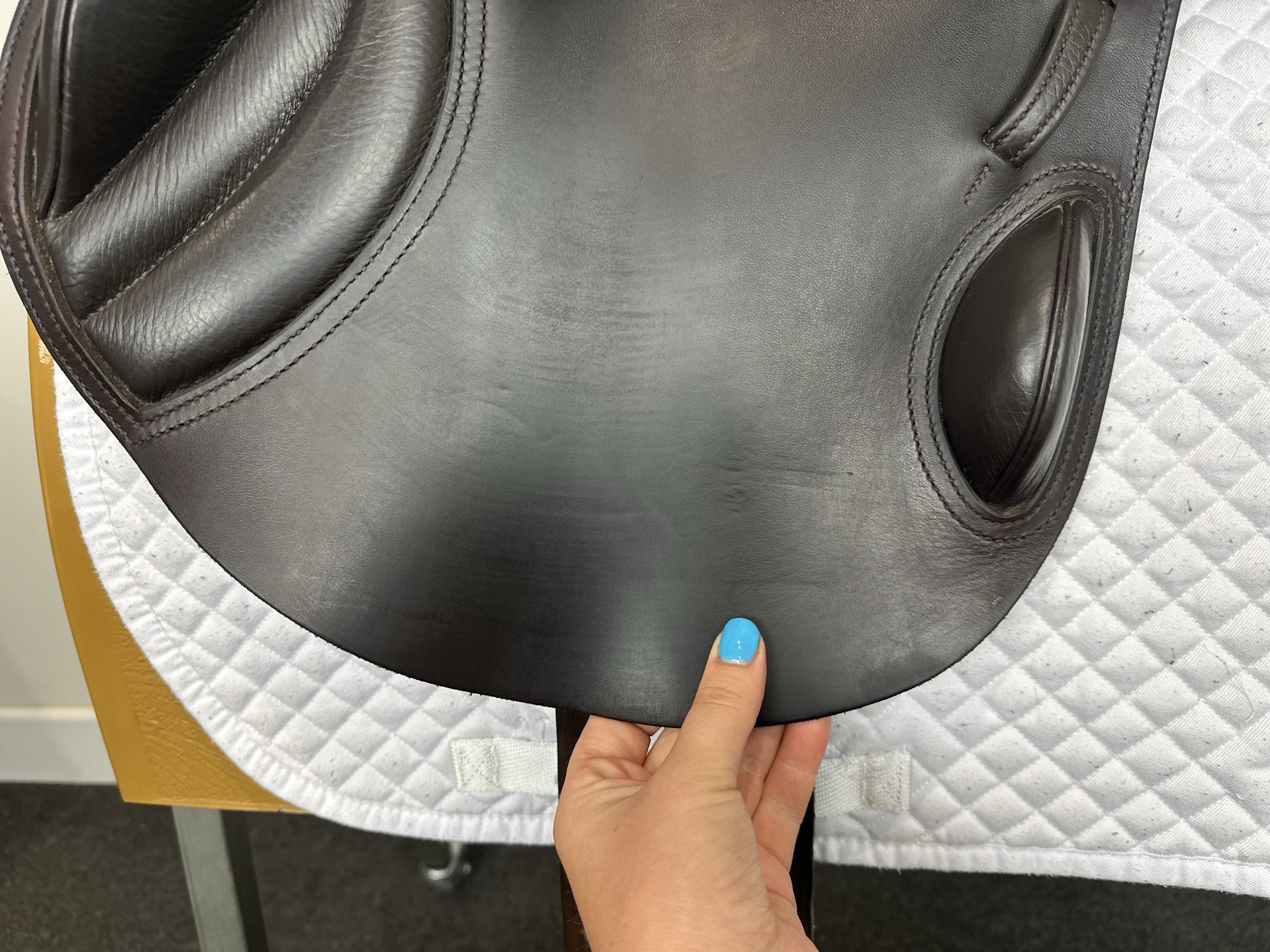 Keep your saddle at room temperature, away from direct heat or damp conditions. Always store it on a saddle rack or stand to preserve its shape.
