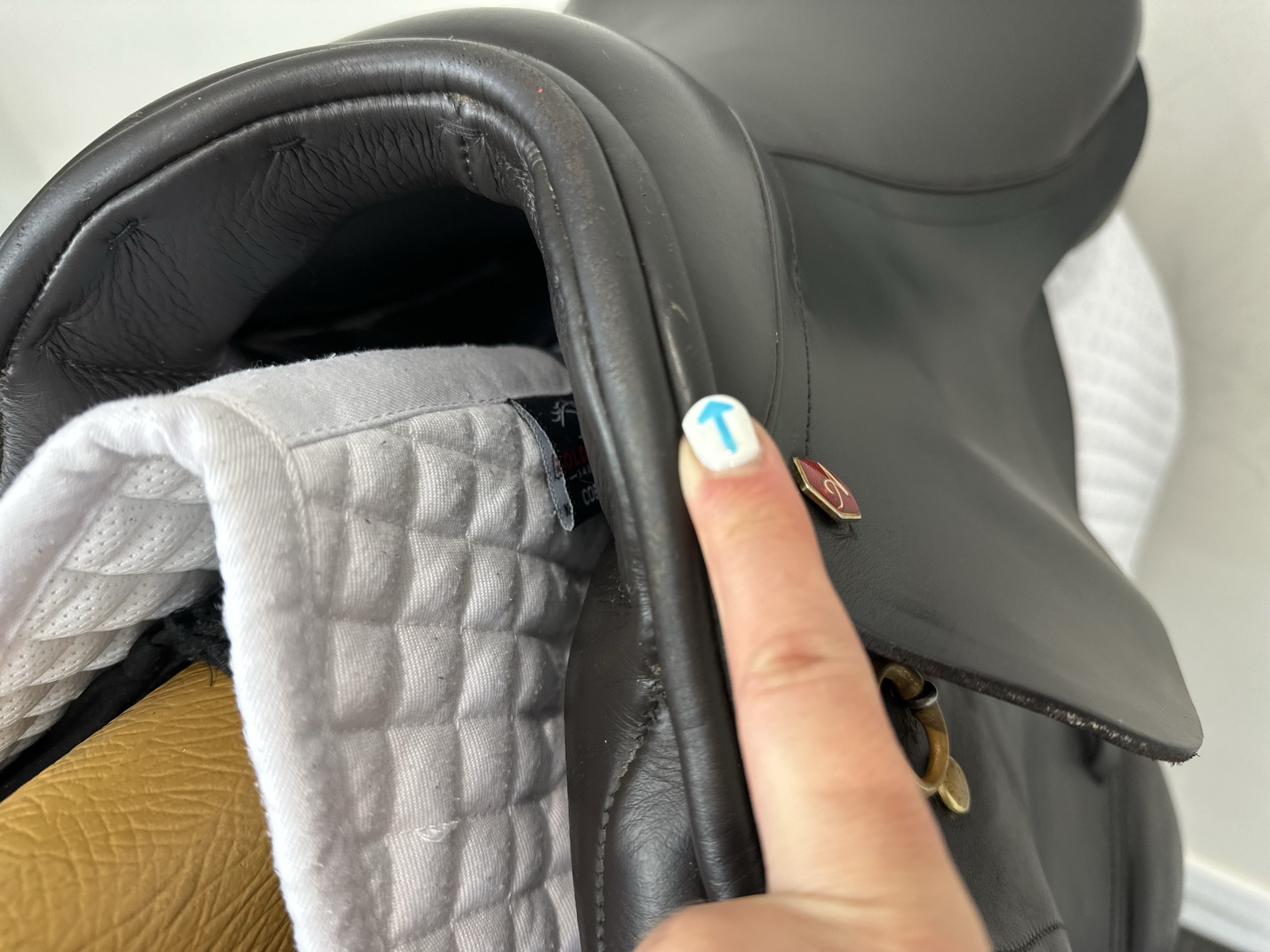 - Ghosted stitching on knee rolls for rider comfort