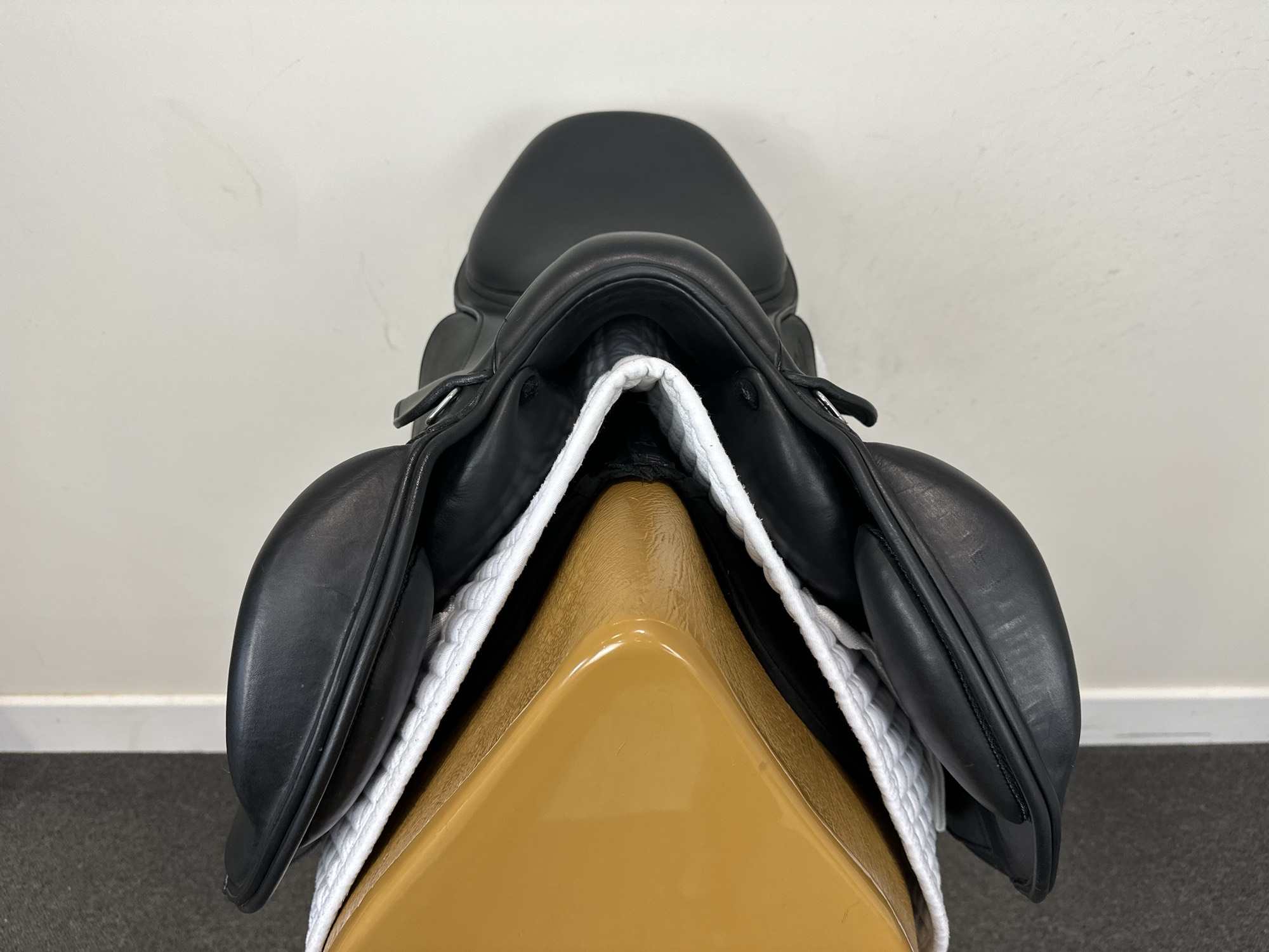 - Forward-drawn flap for shorter stirrup leathers and better leg contact