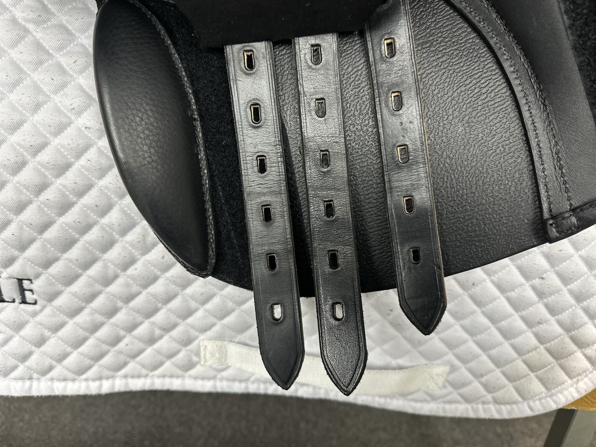 Friction rub areas, such as where the stirrup leathers rub on the Flap.