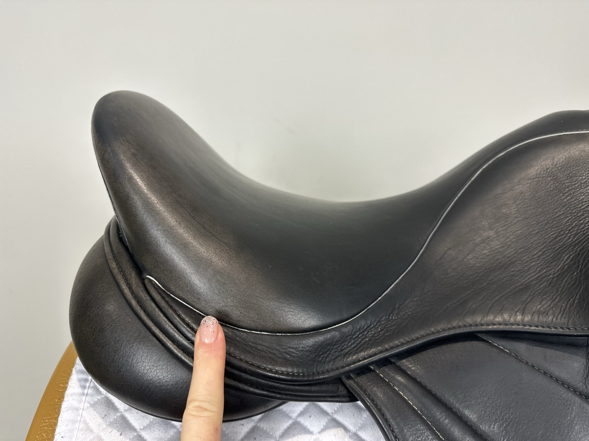 - The seat is more ‘forward’ in order to precisely align the rider more ‘in’ over the horse’s centre of balance