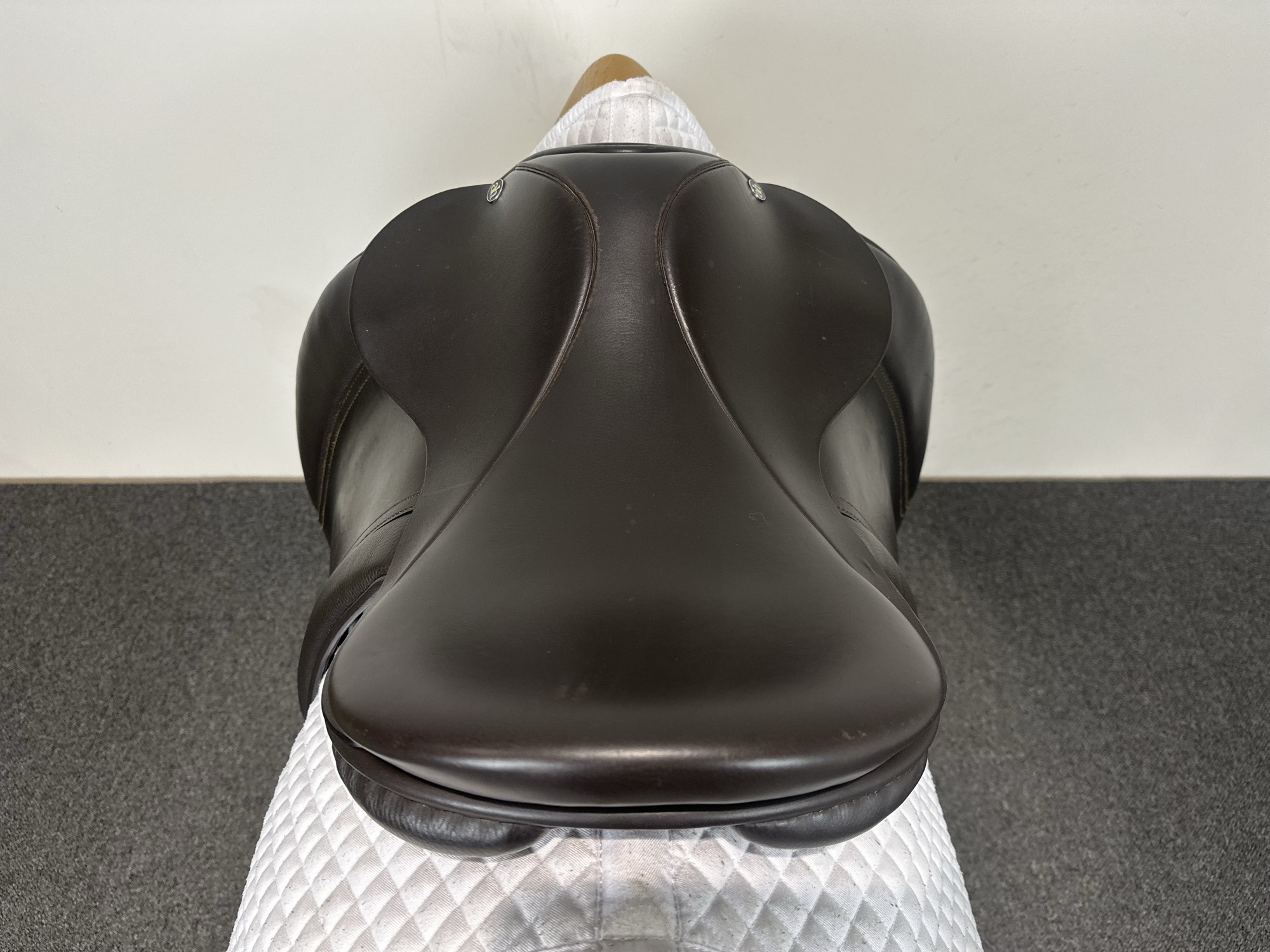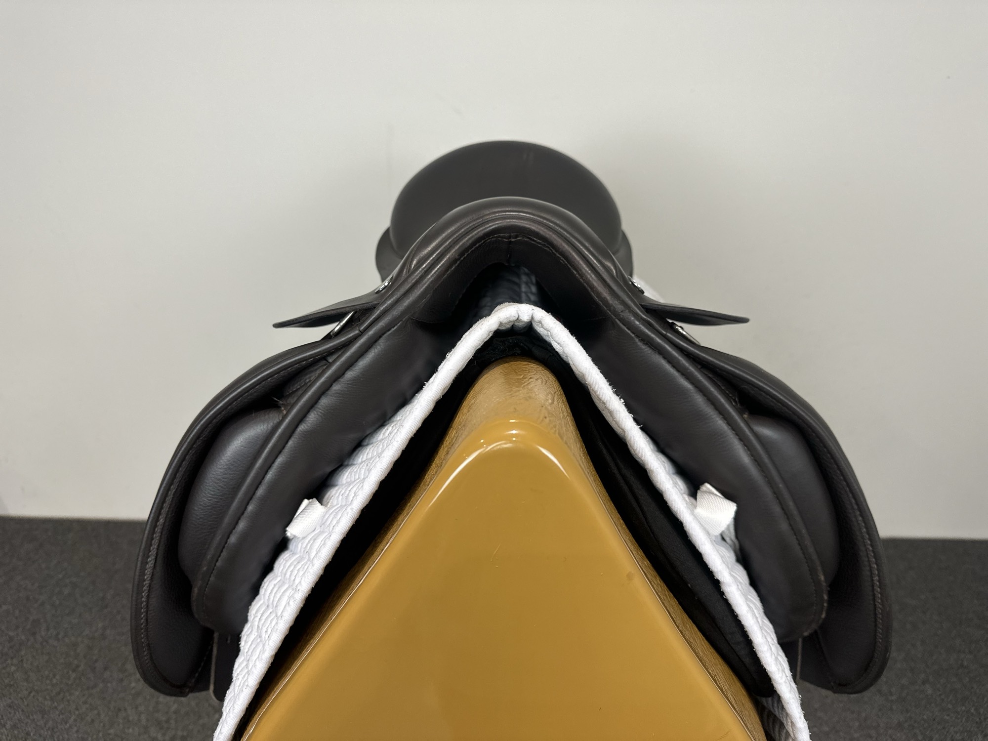 - An elegant show saddle with round cantle.