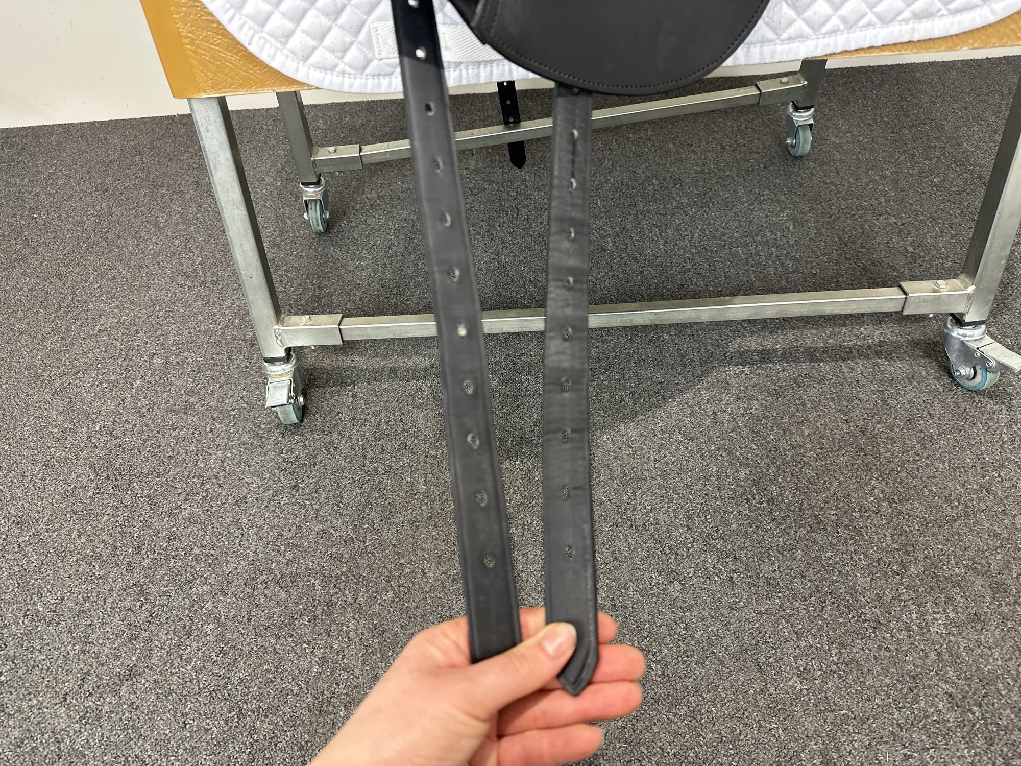Keep your saddle at room temperature, away from direct heat or damp conditions. Always store it on a saddle rack or stand to preserve its shape.