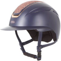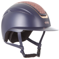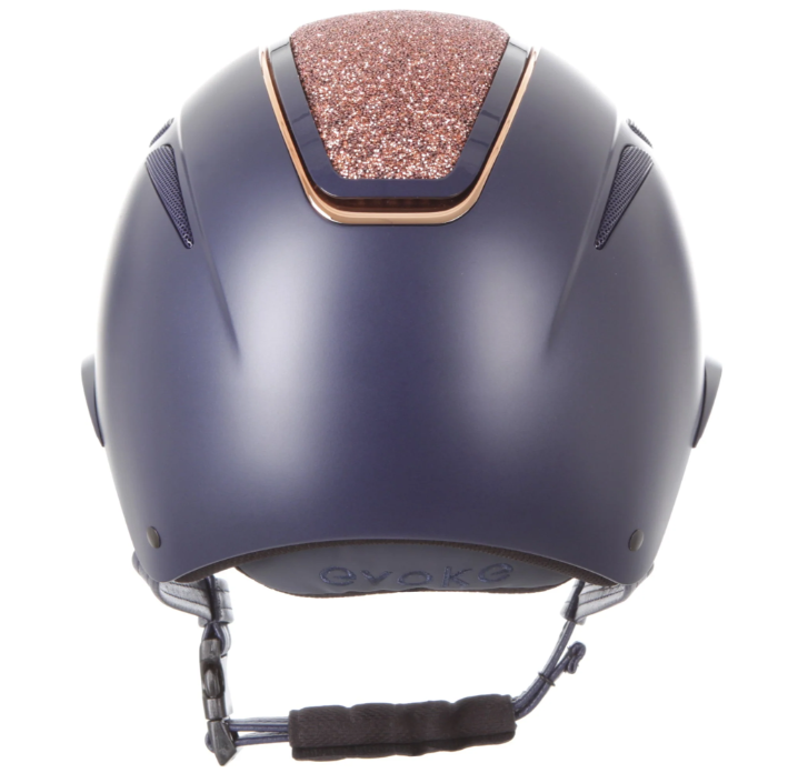 Durable navy outer shell with rose gold detailing and crystal accents