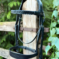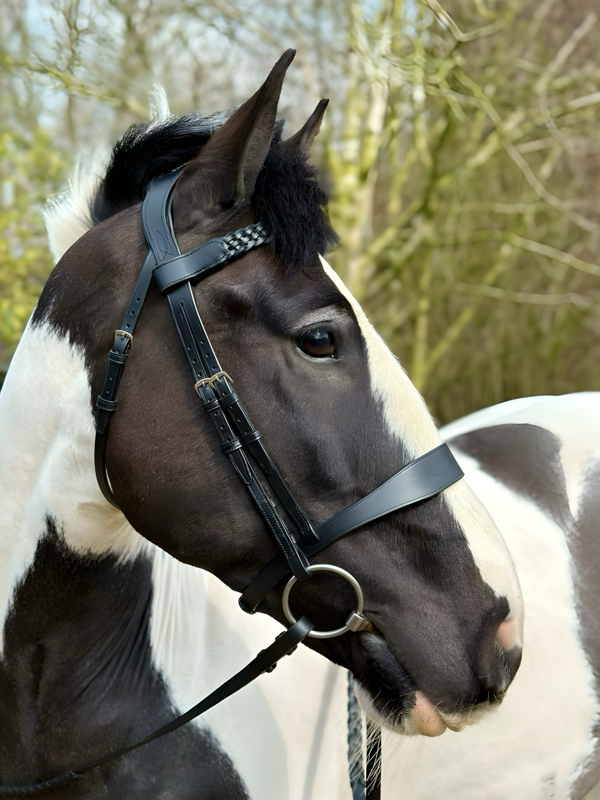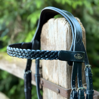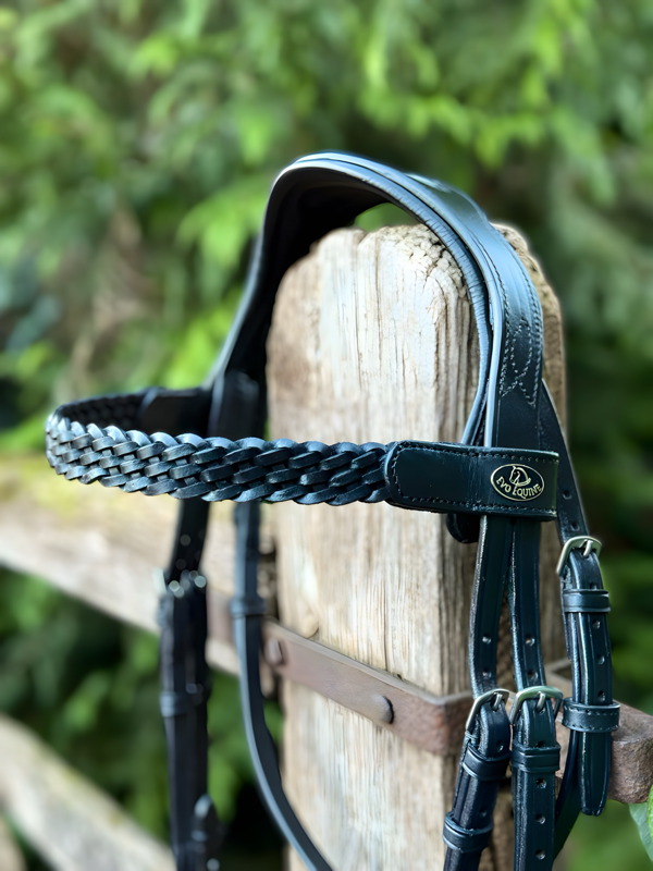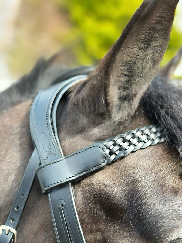 Five‑strand plaited browband for elegant show‑ring appeal.