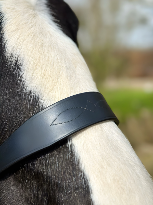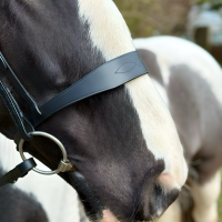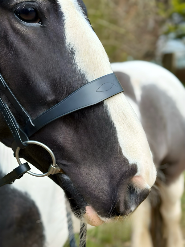 Tapered noseband sides to reduce bulk and pressure at the cheeks and molars.