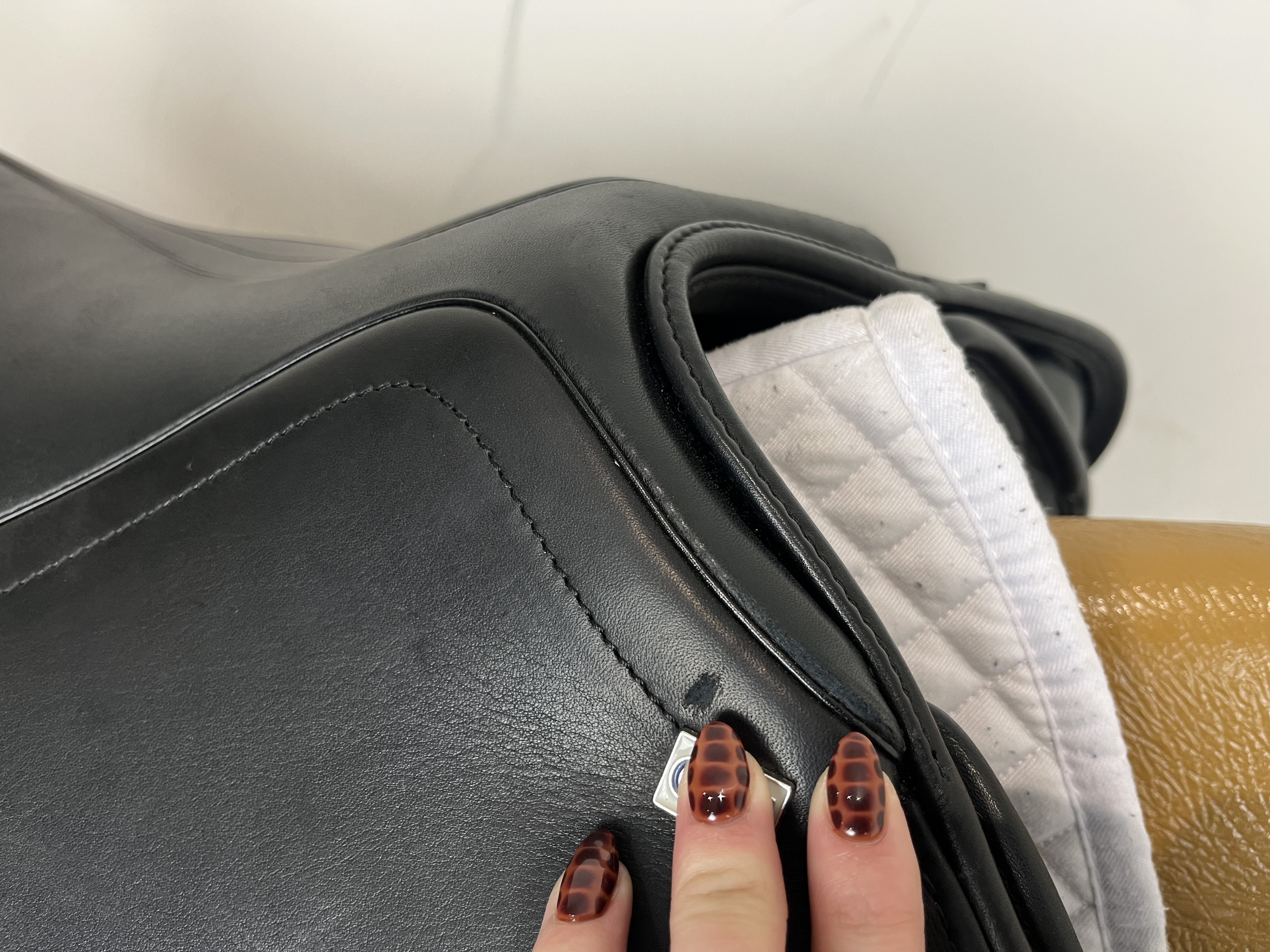 Friction rub areas, such as where the stirrup leathers rub on the Flap.