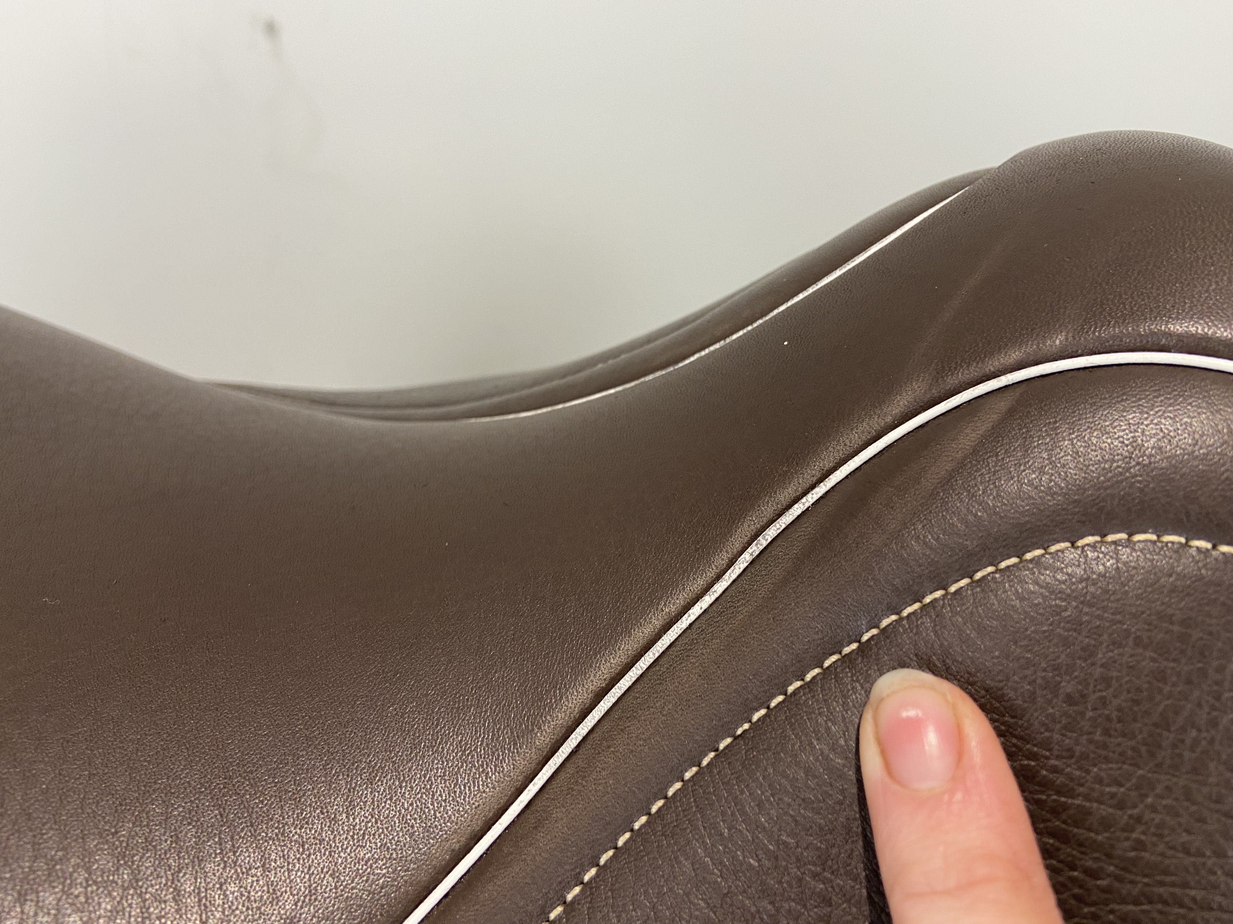 - Contrast stitch and white pipe around seat
