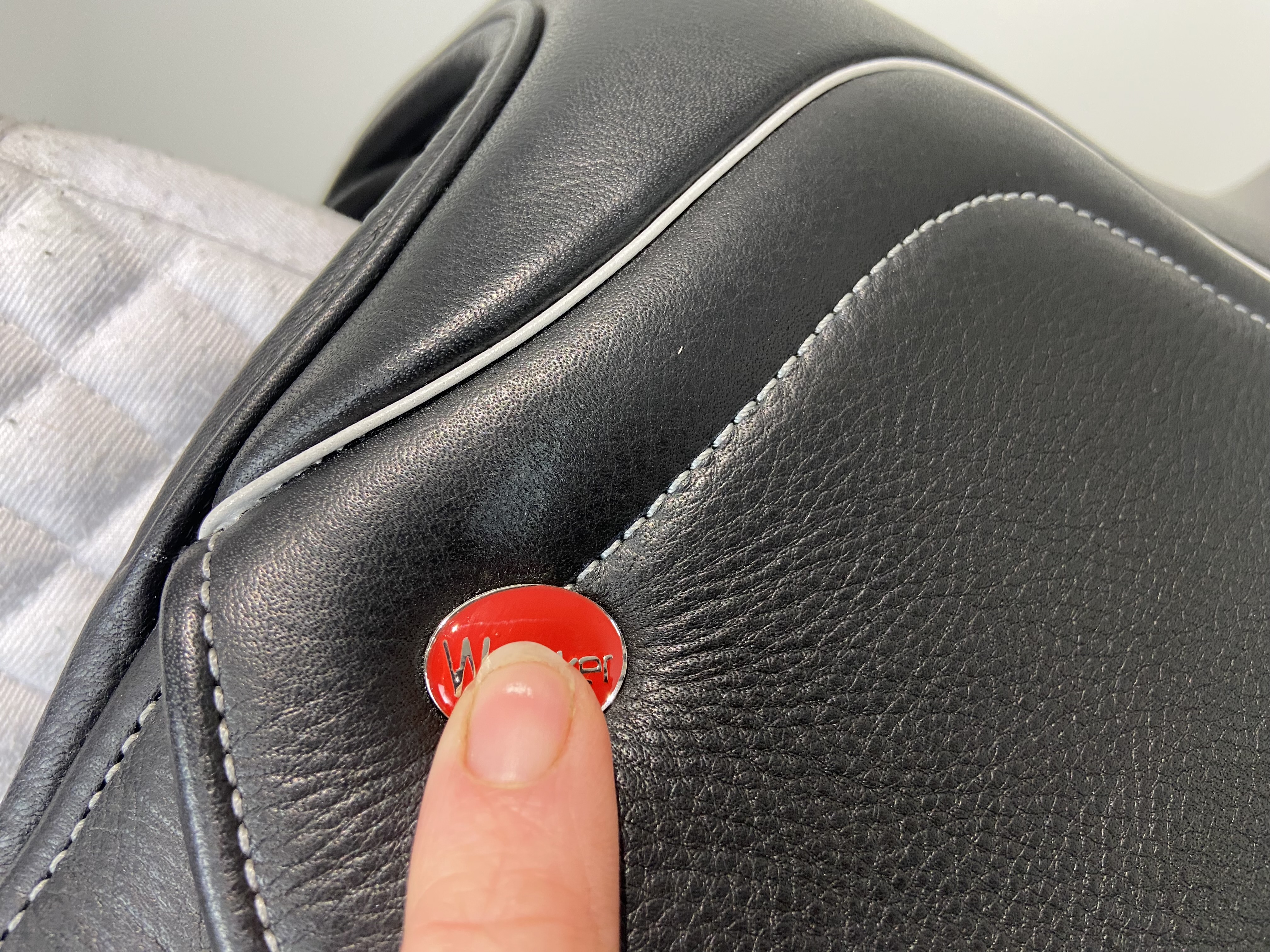 - Contrast stitch and white pipe around seat