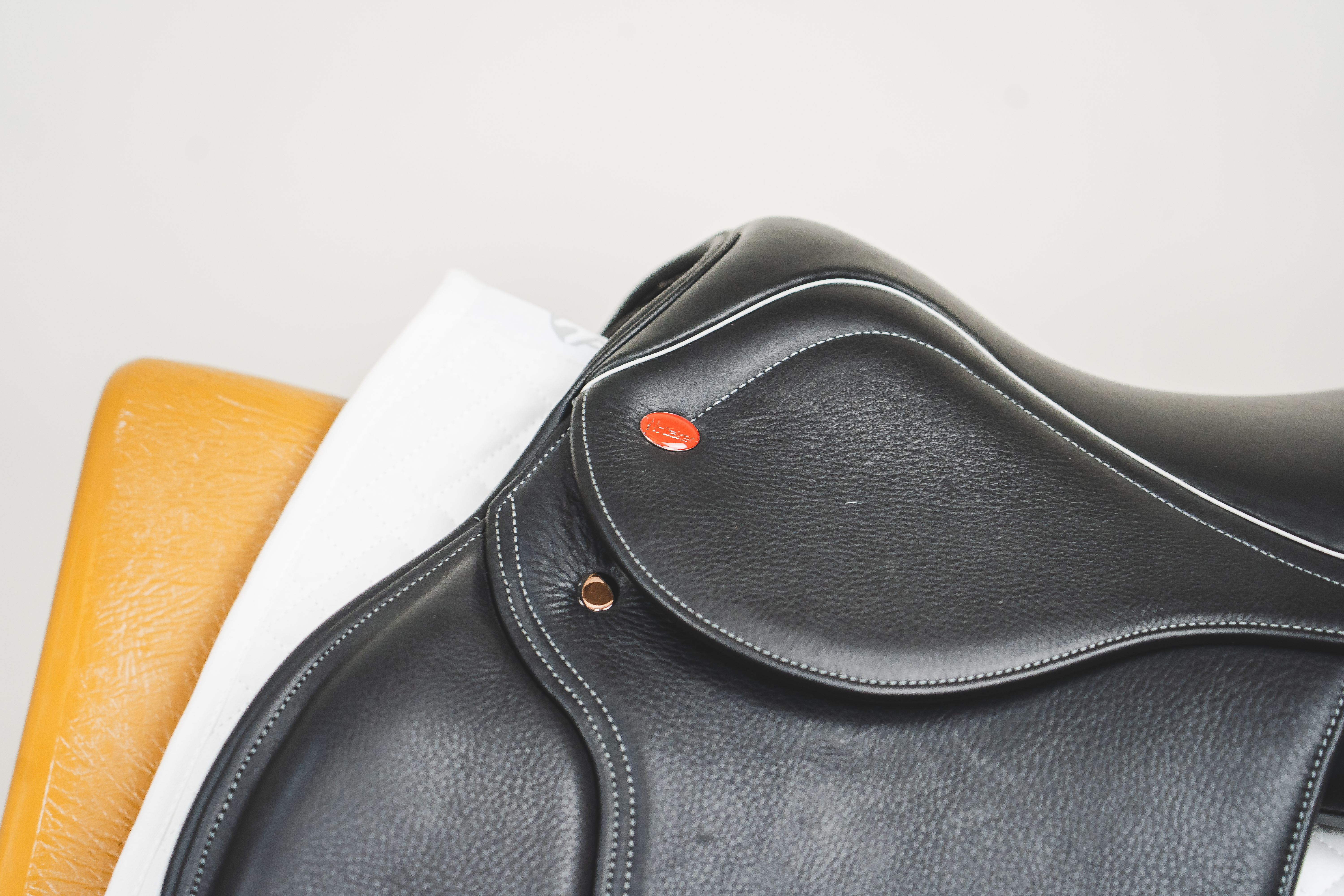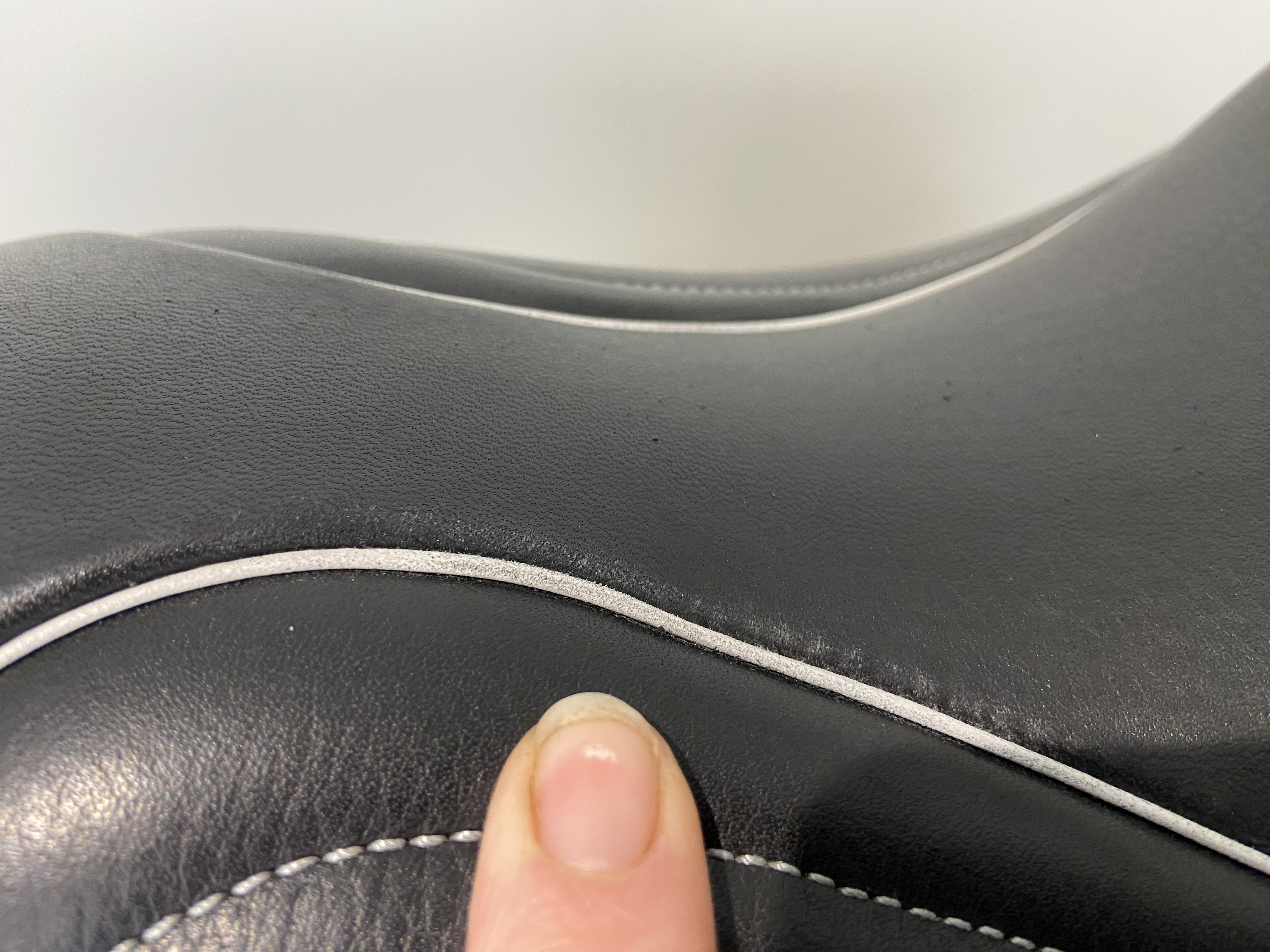 - Contrast stitch and white pipe around seat