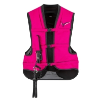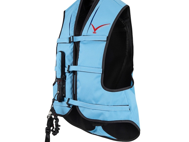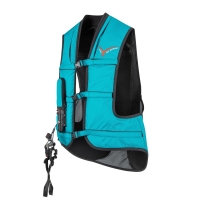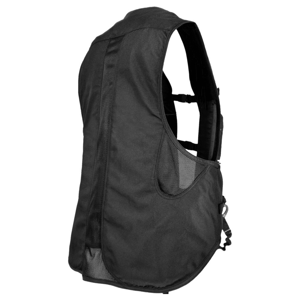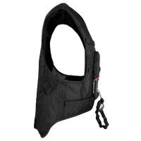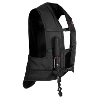 20% faster inflation rate (60-80 milliseconds) for quick protection. Adjustable straps for a customizable, secure fit. Pleated neck design for better inflation action. Neoprene collar for added comfort. Extended shirt tail for additional lower back, kidney, and coccyx protection. Lifetime warranty on airbag component (with annual service). Includes saddle attachment, bungee lanyard, and 1 CO2 canister. Simplified canister connection system for easy installation. Meets EN 13158: 2009 and SATRA M38 safety standards. Not suitable for use with Western saddles. Can be worn with or without a body protector, depending on competition rules.