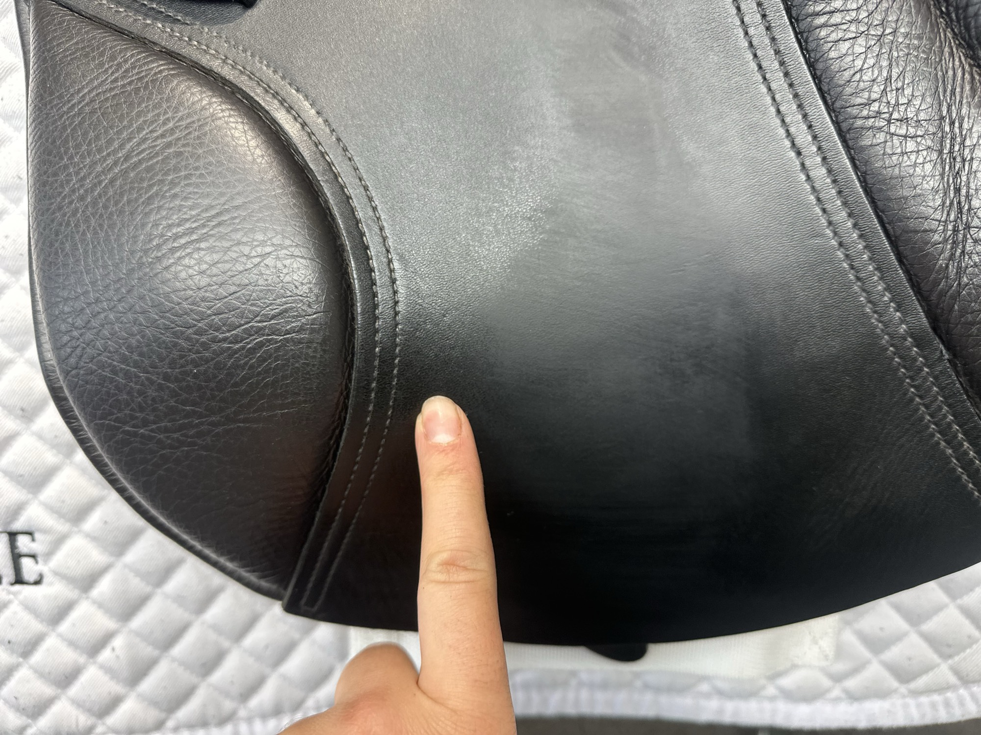 - Ghosted stitching on knee rolls for rider comfort