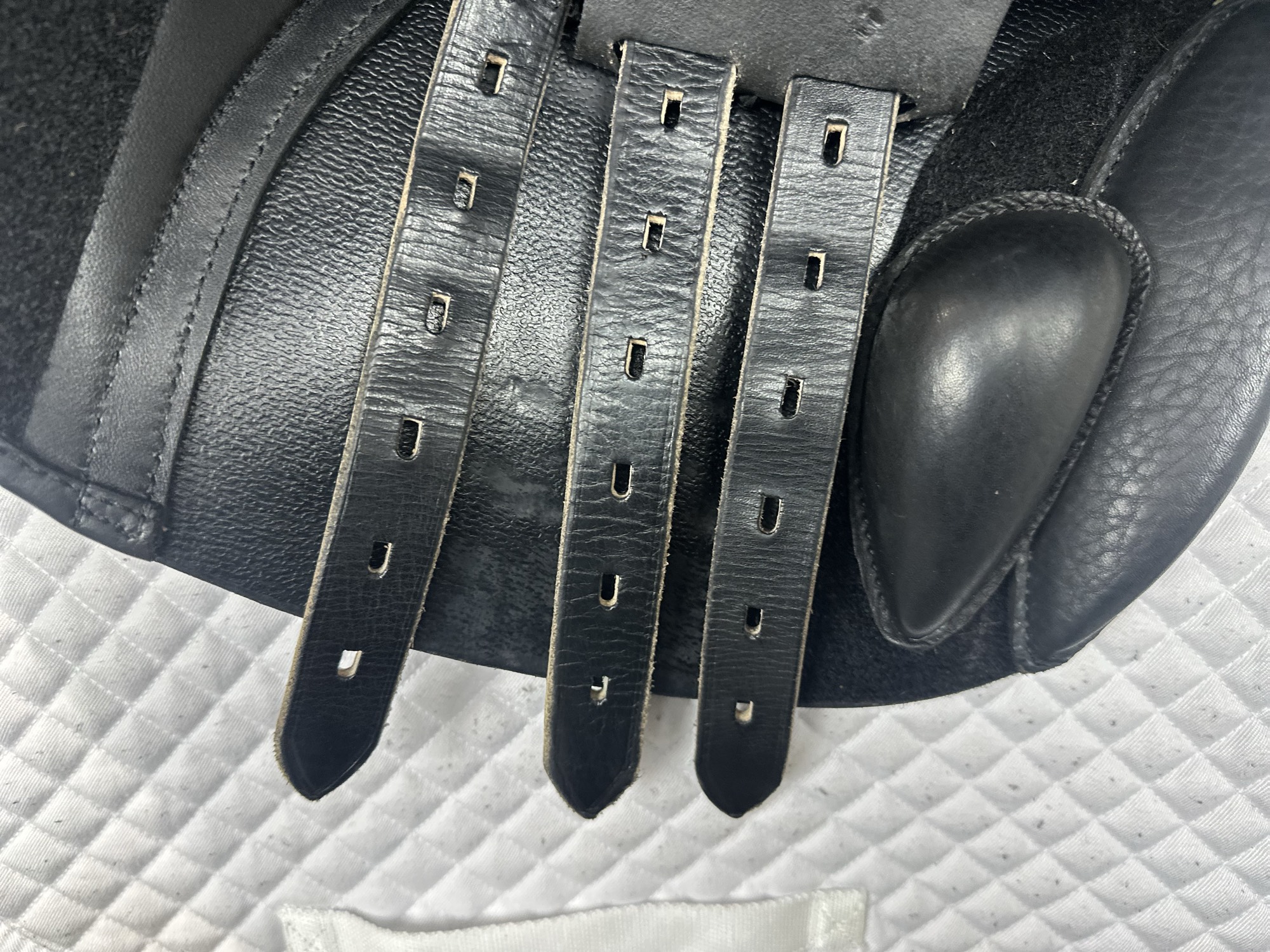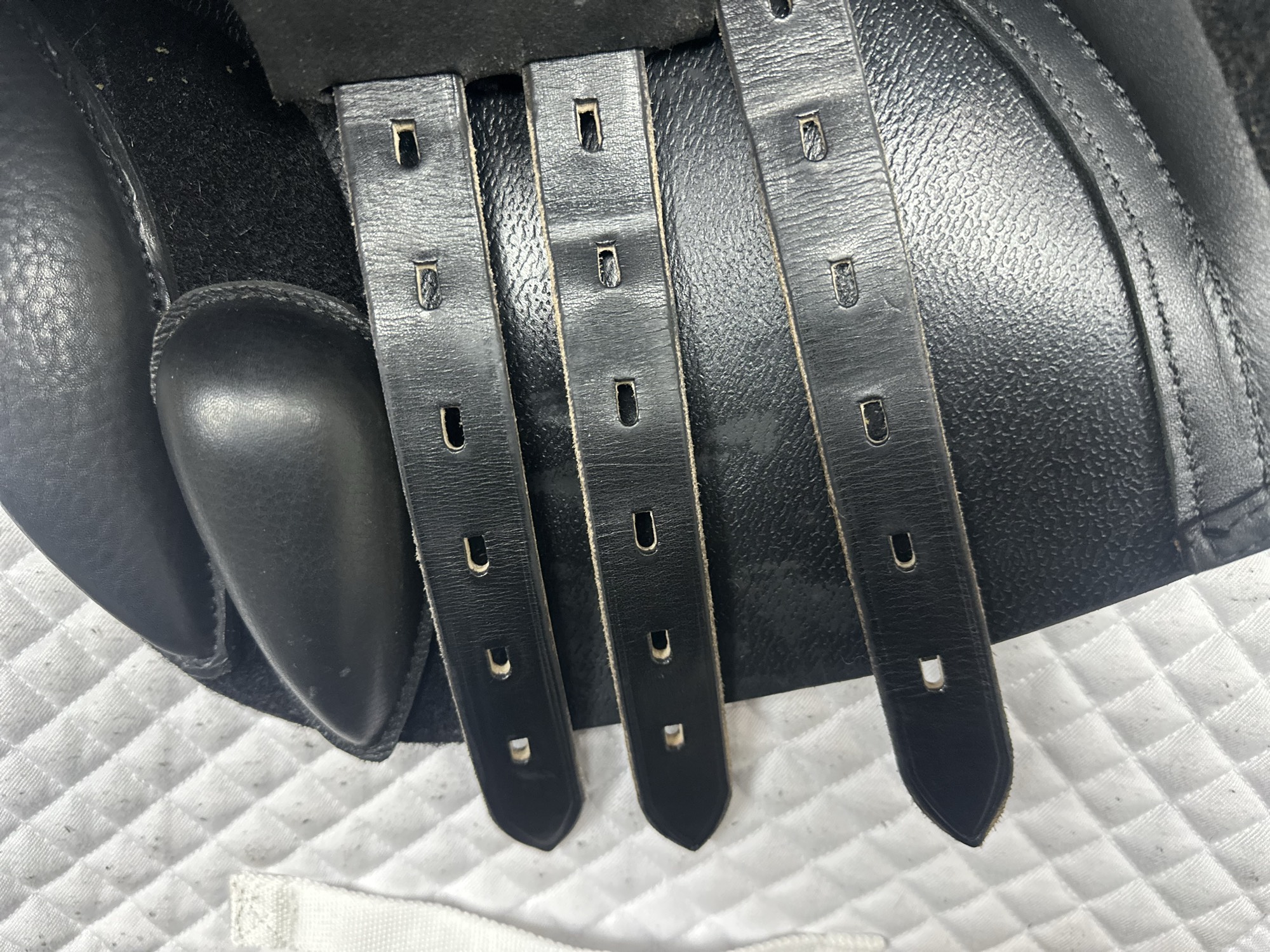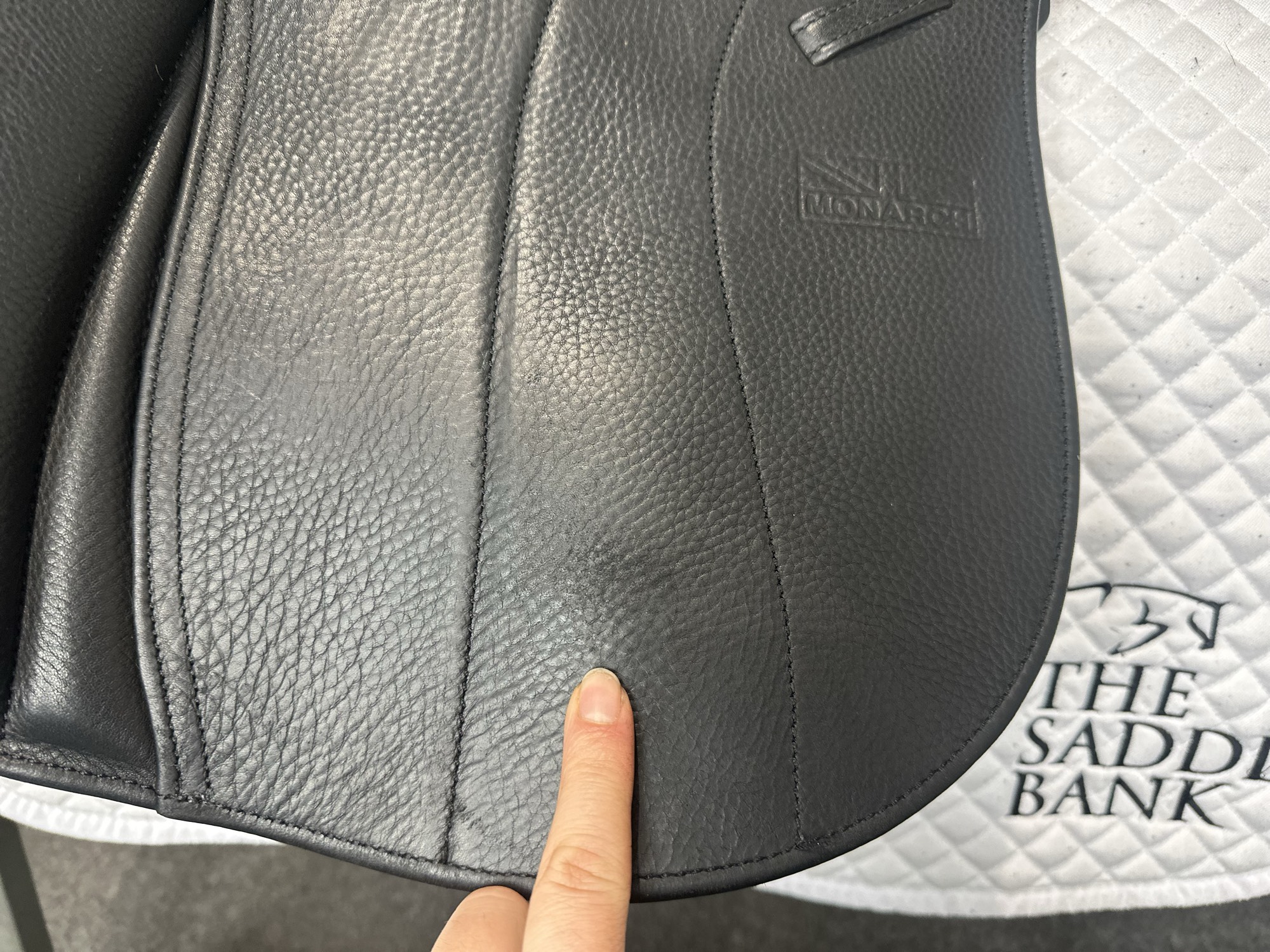 Friction rub areas, such as where the stirrup leathers rub on the Flap.