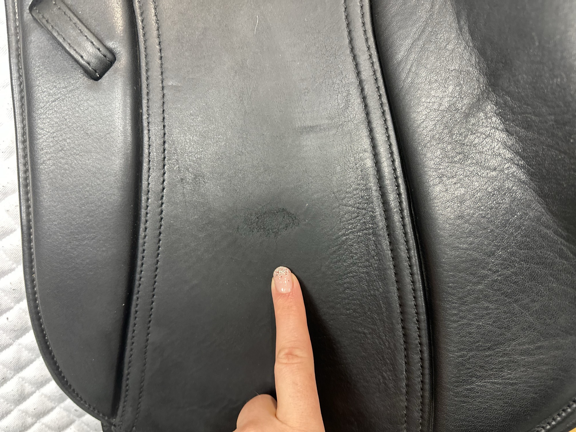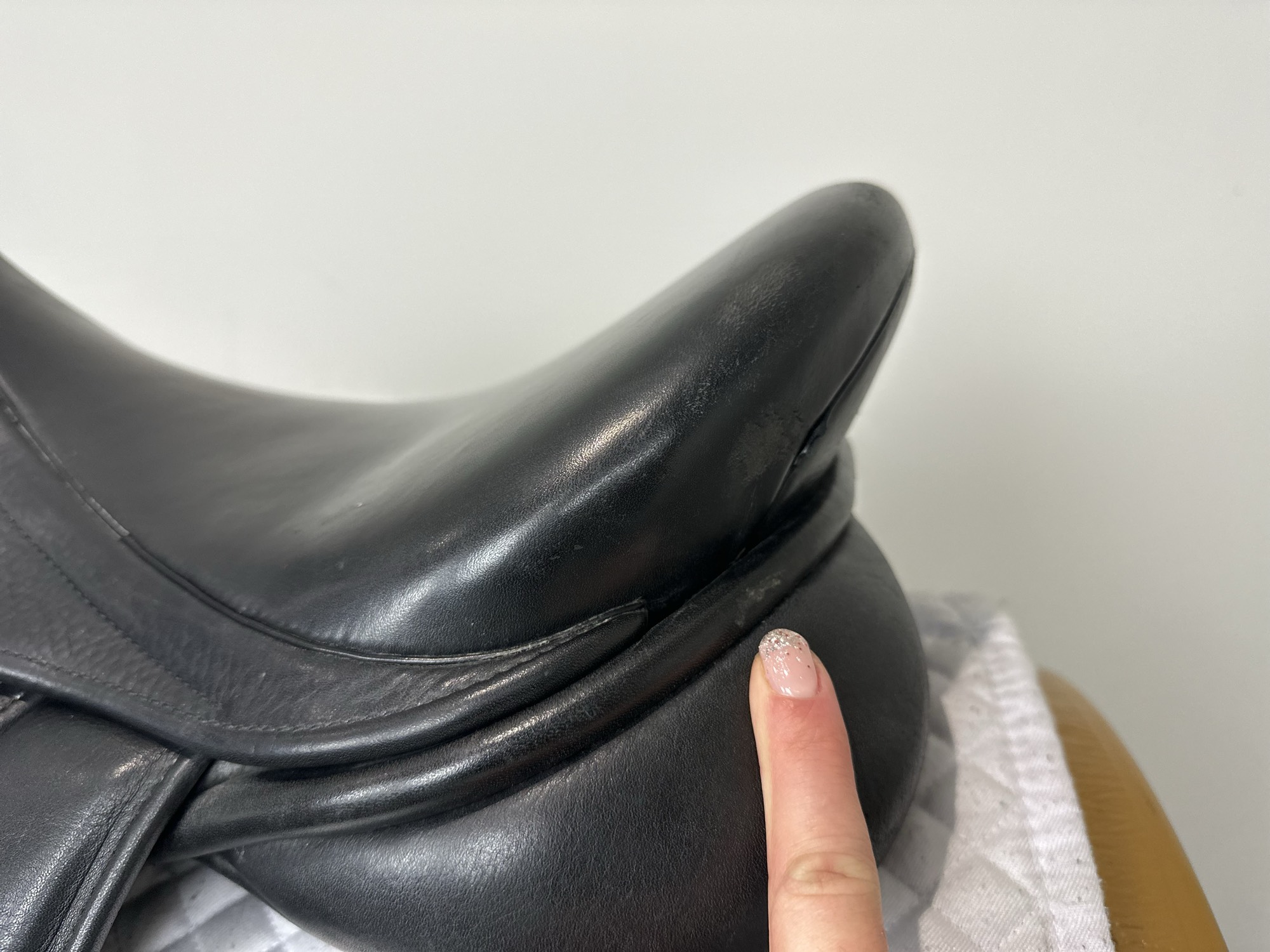 It is normal, especially if the surface of the leather is ‘damp‘, to experience some colour loss onto your breeches.