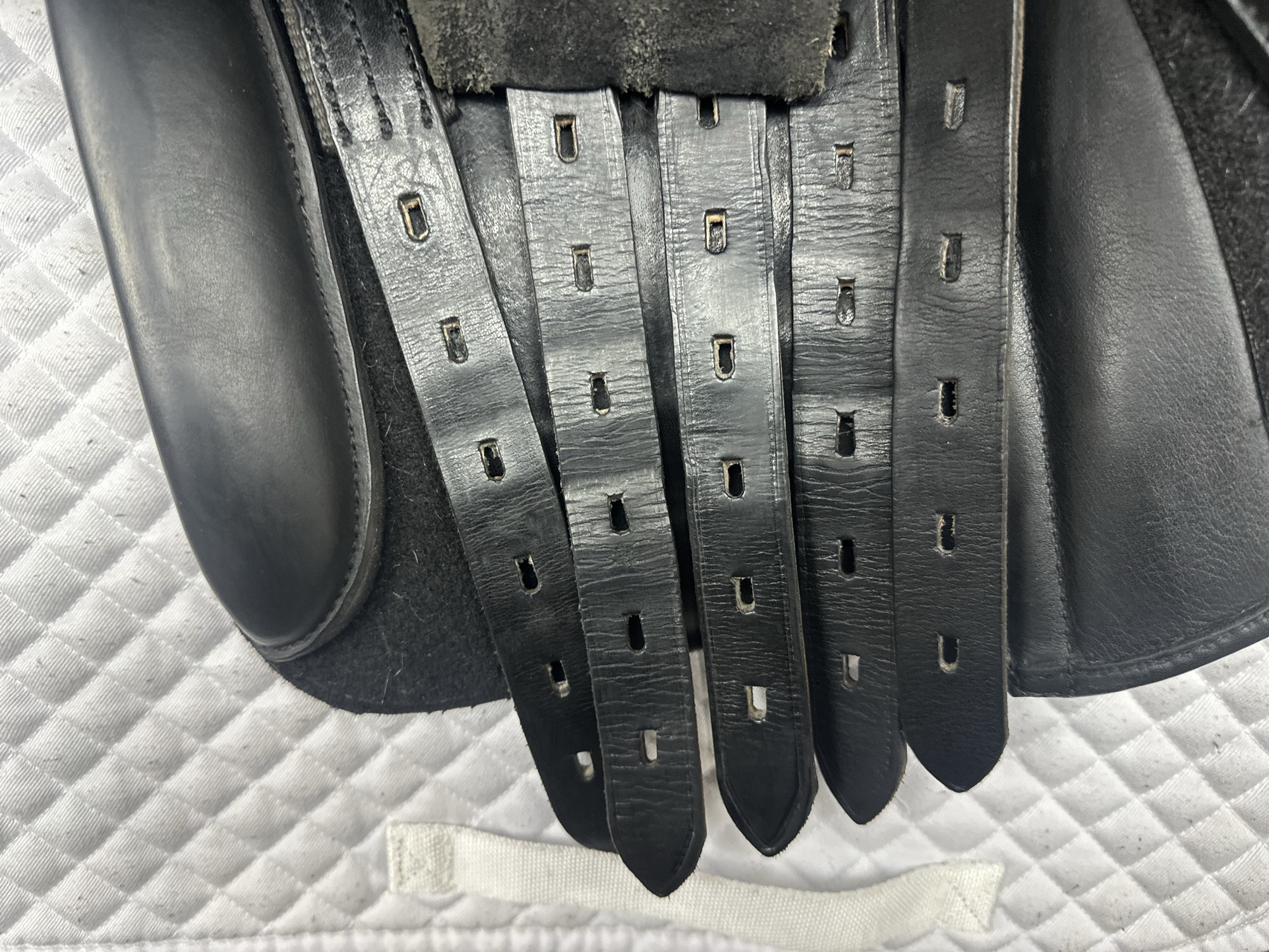 Friction rub areas, such as where the stirrup leathers rub on the Flap.