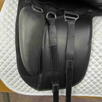 - Moveable velcro thigh block to help rider maintain a balanced dressage position.