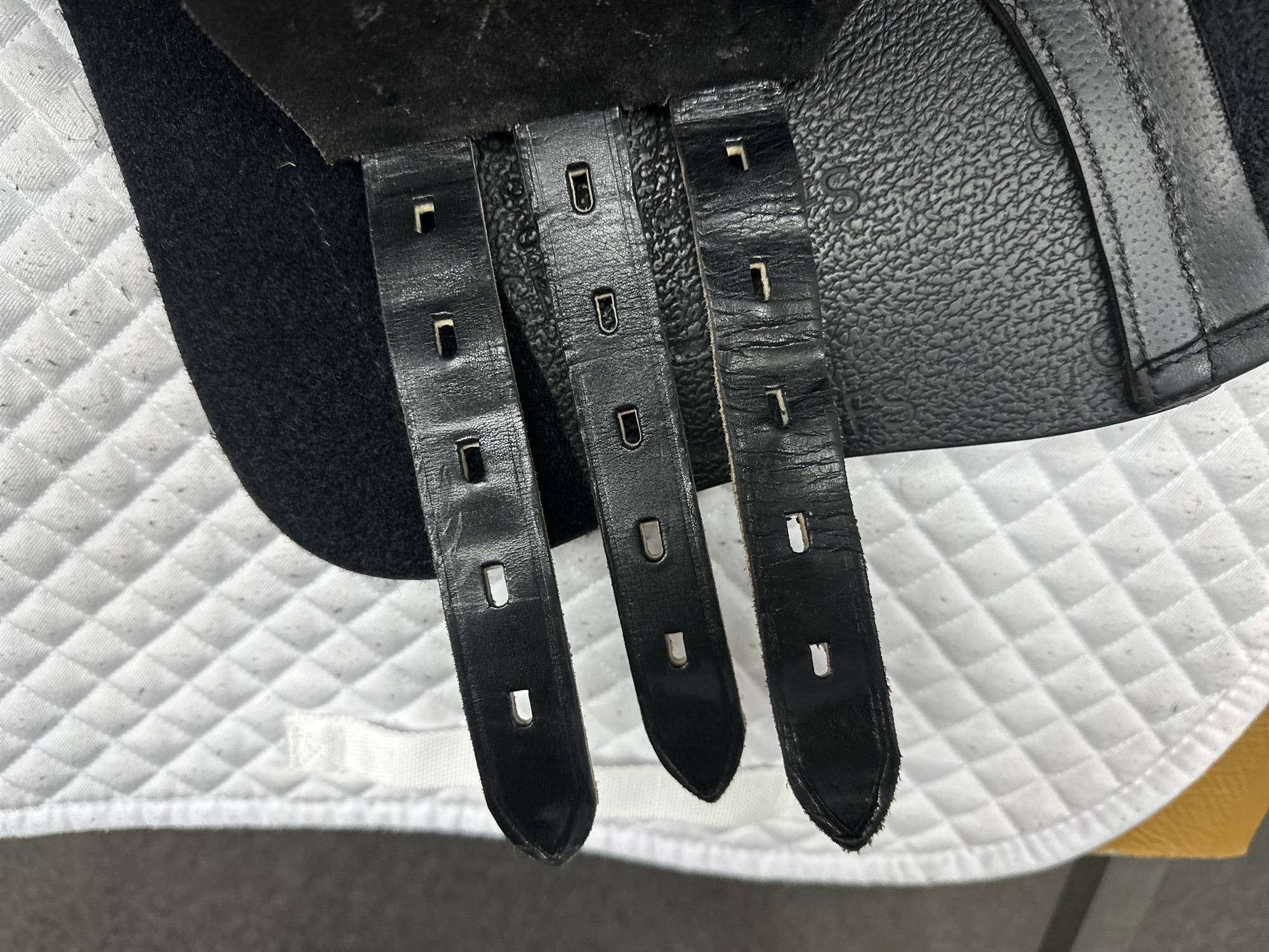 Friction rub areas, such as where the stirrup leathers rub on the Flap.