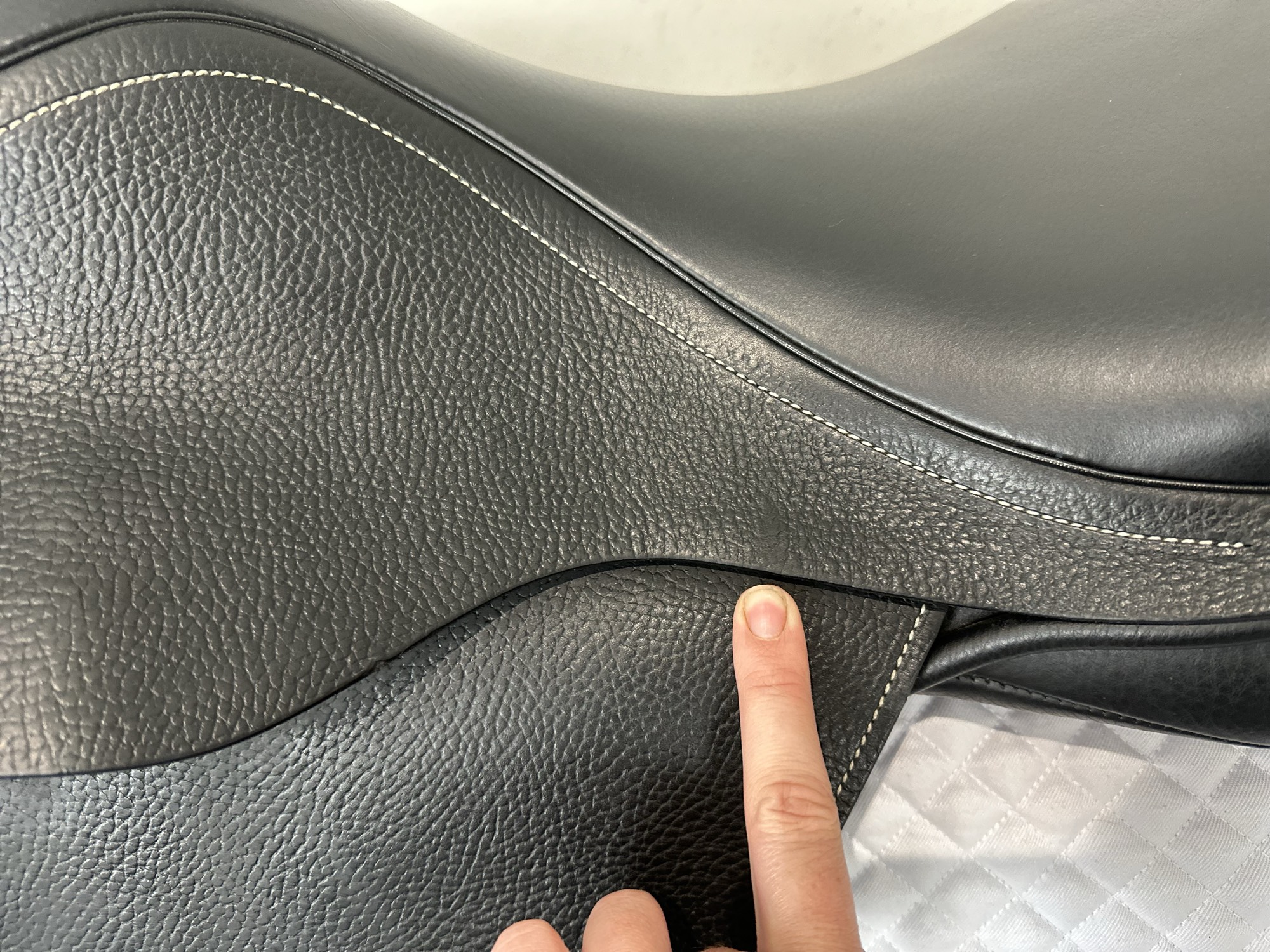 - Ghosted stitching on knee rolls for rider comfort